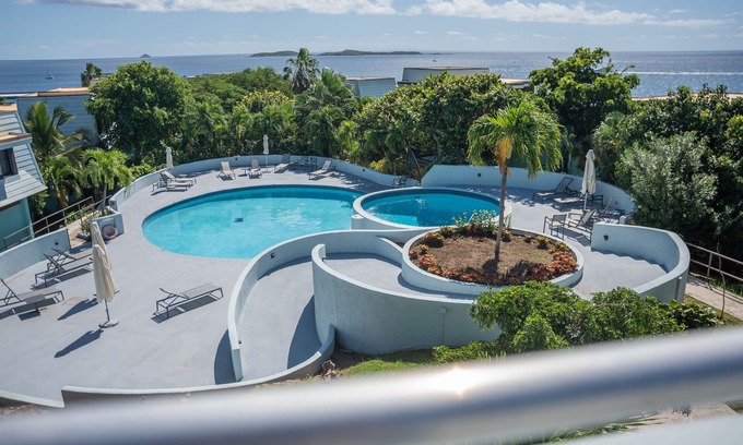 Relax with a whole family or group of friends at this peaceful condo overlooking Caribbean Sea. Wake up to ocean views gorgeous sunrises and incredible sunsets.. This amazing rental offers, 3 different pools, tennis & pickleball courts, beach access, 2 oceanfront restaurants walking distance, one with live music, beach access with diving shop. The property is centrally located btw. Charlotte Amalie and Red Hook. The best part is Jeep rental option with complimentary delivery to the airport.