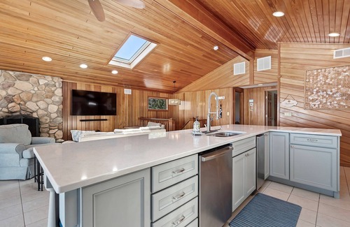 SEA3200 - Direct Oceanfront home in desirable Seacrest Beach, Lavallette! This deceiving home sleeps up to 10 (and your pet is welcome), with an open concept floor plan that features classic beach house designs but with today's modern updates! Top level is a large custom kitchen with sprawling center island w/ seating, dining nook for family meals or games, cathedral ceilings w/ skylights add to the open & spacious feel with a wet bar, comfortable living room w fireplace & smart tv all with Ocean & beach views! 2 bedrooms with access to large rear deck & full bath also on this floor. The ground level offers 2 more bedrooms & a living room giving you all the day or night time space you need! Plenty of furniture on the beach deck along with a gas grill & enclosed outdoor shower! Enjoy the best sunrises every day of your trip from your own sun deck in the sand or after a quick stroll onto the beach itself. Located at the end of Seacrest Drive which gives you plenty of parking! Owner provides linens and bathotowels as an added bonus.