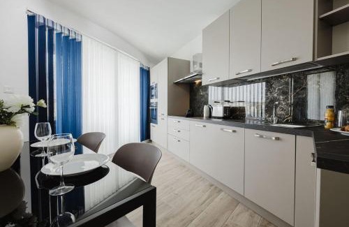 Food & DrinkTea/Coffee maker, Bottle of waterInternetInternet facilitiesBathroomShared bathroom, Toilet, Towels, Hairdryer, Toilet paper, ShowerMedia & TechnologyTV, Flat-screen TVGeneralCarbon monoxide detector, Air conditioning, Heating, Fire extinguisher, Iron, Smoke AlarmOutdoorsBalcony, TerraceKitchenMicrowave, High chair, Dishwasher, Toaster, Dining table, Stovetop, Oven, Wine glasses, Electric kettle, Washing machine, Kitchen, RefrigeratorLiving AreaSitting area, Sofa, Dining areaViewSea view, ViewBedroomWardrobe or closet, Linens, Childrens' cribsRoom AmenitiesSofa bed, Adapter, Drying rack for clothingAccessibilityAccessible by elevator |