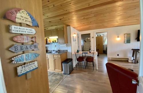 This Fully furnished 3 Bedroom cottage comes with everything you will need to enjoy your stay. Plenty of indoor and outdoor seating . The beautiful private beach is 30 sec walk from your door with access to kayaks , paddle board and beach chairs . Relax outdoors with many seating areas with sun or shade. This cottage is perfect for a family with spaces inside and out.