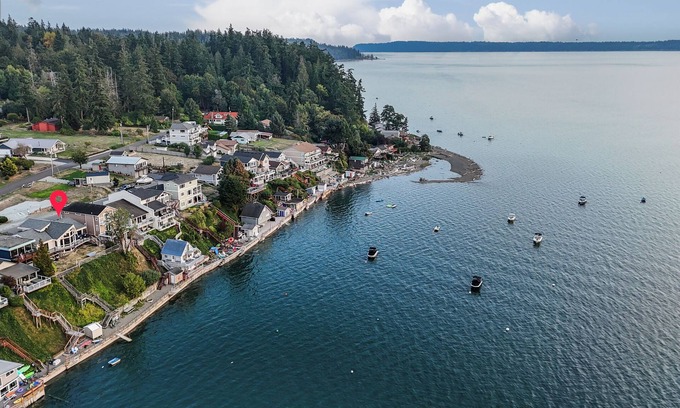 Welcome to your ultimate coastal retreat—where timeless elegance meets modern luxury. Just 1 hour from Seattle, this oceanfront haven sleeps up to 10 with 3 bedrooms + loft, featuring soaring wood-beam ceilings and solid wood furnishings. Enjoy unobstructed water views and sunsets that create lifetime memories. Please note: while oceanfront, there is no direct beach access—the old staircase is unsafe and not for guest use.