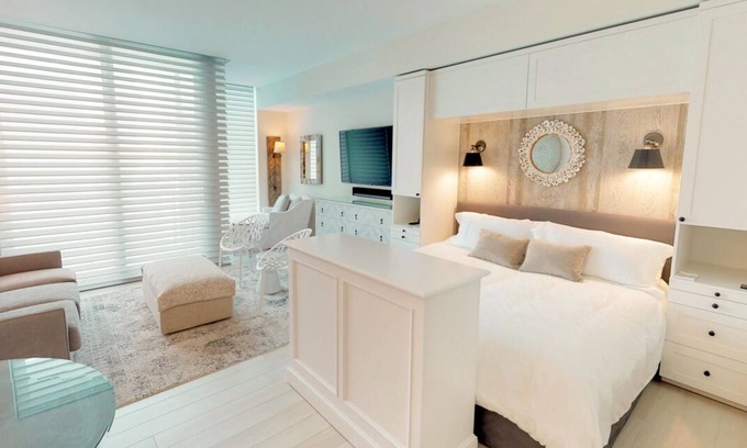 Soothing tones of ivory, white and cream throughout bring the beauty of white-sand beaches inside. Plus, rest comes easy thanks to the downy king bed wrapped in sumptuous linens.