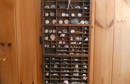 SECOND FLOOR: Ascend the stairs with built-in bookcases holding found treasures and board games to find two Bedrooms, each with a Double bed (not Queen or King) and a built-in, cushioned bench with storage underneath at each end of the upper hallway. Between these two primary bedrooms sits a small TV Room with a private balcony that serves as a third bedroom with its Queen futon bed and ship's ladder to extra futon mattresses on its loft floor. Two Full Baths, each with a combined tub and shower complete this second-floor area.