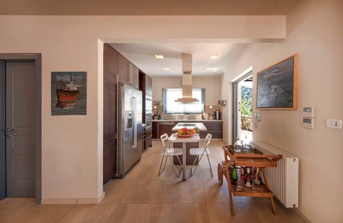 Experience luxury, tranquillity, and breathtaking sea views at our stylish four-bedroom villa. Located in a peaceful and non-crowded area next to Frangolimano Beach, this private retreat offers the perfect escape. Enjoy privacy, spaciousness, and serenity, with a private path leading you to the stunning beach in just one minute.