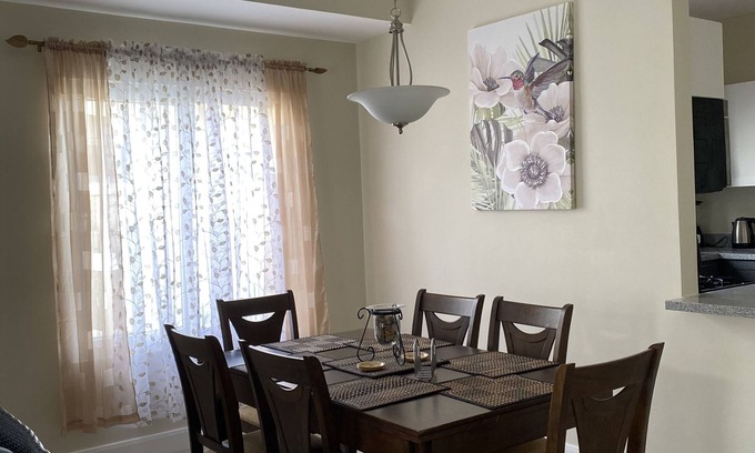Enjoy a relaxed and comfortable stay at this private fully furnished home. Bedrooms are bright , clean and offer complete comfort with AC, fan and storage. Fully equipped kitchen with new appliances including microwave, coffee maker, toaster, etc. Beach is a 5 min walk away. Community pool, gym, tennis court, walking trail and clubhouse with table tennis.
