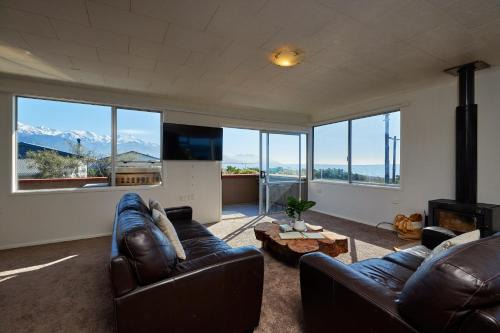 Seas The Day In Kaikoura - Book Now! offers accommodations in Kaikoura, 1.2 miles from Kaikoura Beach. This property offers access to a pool table, free private parking, and free Wifi. Providing a balcony and sea views, the spacious vacation home includes 4 bedrooms, a living room, flat-screen TV, an equipped kitchen, and 2 bathrooms with a bath and a shower. Towels and bed linen are featured in the vacation home. There's also a seating area and a fireplace. You can play table tennis and darts at the vacation home. A baby safety gate is also available at Seas The Day In Kaikoura - Book Now!, while guests can also relax in the garden.