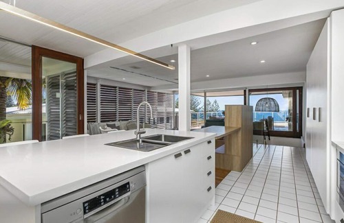Recently renovated, the large living areas are the centerpiece of the apartment, opening onto the biggest north east facing deck in town. The modern kitchen positions itself between the open lounge and large formal dining room, with a wonderful private upper back deck that features a glorious daybed. Easy entertaining with friends and family with spectacular views is this apartments speciality. The upper level also features a huge master bedroom with ensuite – imagine waking in your king-size bed using the automated blinds to open up the dazzling ocean vista, what a way to start your day! The second queen bedroom with adjacent bathroom is also located on the upper floor.