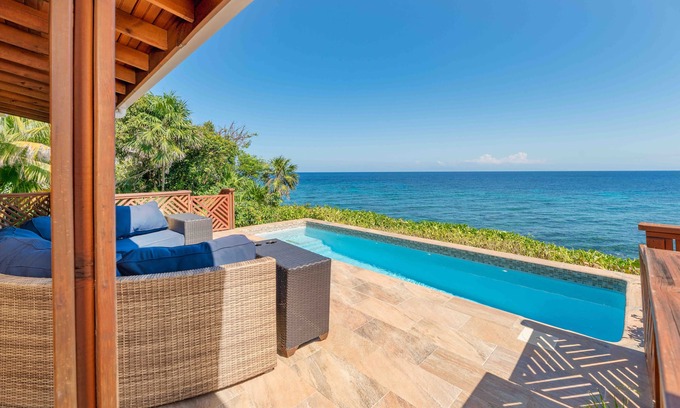 Retreat to your own slice of paradise at The Mollusk: a gorgeous oceanfront villa featuring a private pool overlooking the Caribbean Sea. With 3 bedrooms and 2 full bathrooms, the villa is a fantastic option for a group of friends or a family seeking a getaway to Roatan.