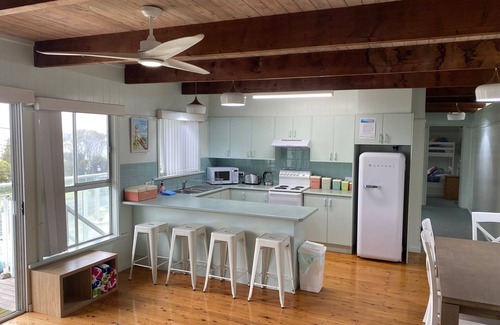 The simple things in life are often the best.... and this is your chance to experience the slow side of life. Come and enjoy sun, surf and a hint of the nineteen sixties at our classic beachcomber style holiday house. Disconnect and unwind, spend time with the family, swim, boat, kayak, fish, Surf or just relax on the deck and take in that cracking view with a beer or a wine. Stroll to cafes, order takeaway or cook up an Aussie BBQ and soak up where you are. Just be Mellow & Enjoy