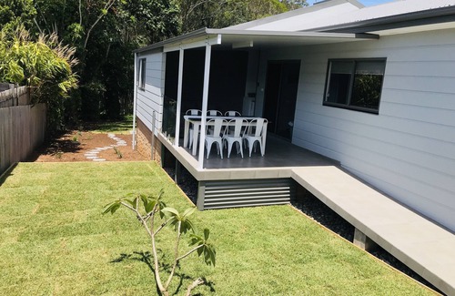 Backing onto lush rainforest and just minutes from the beach, you can relax to the sound of birdsong and ocean waves, either from the lounge or the back deck.