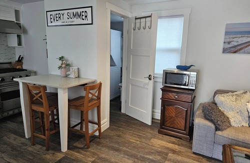 Stay in Seaside Heights in our cozy back cottage. The boardwalk and Beach are less than a four minute walk away. Park your car and leave it for the week as everything you need is within walking distance. Skip downtown and enjoy the boardwalk by foot.... Our street is quiet and considered an "Oasis" within Seaside Heights. This quaint cottage sleeps 4 and has a large sectionally sofa. There is an outside shower on the property located behind the cottage. There's a courtyard that is shared with our front house. We offer three beach passes to our guests. The cottage has top notch appliances. There is a Viking Range and a Sub Zero Fridge. We have outdoor seating in the courtyard along with hanging cafe lights. . Come spend the week and experience Seaside Heights in a relaxing cozy atmosphere.
