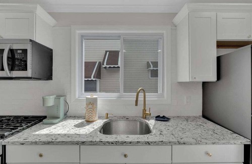 Beach 7 min walk! Paradise House - a charming 5-bedroom beach retreat just 2 blocks from the Seaside Heights boardwalk. This two-unit home offers one private entrance and full kitchen per unit. Upstairs: 3 bedrooms (1 doubles as a living room) and 1 bath. Downstairs: 2 bedrooms, 1 bath, living room, & front porch. Enjoy a stylish interior and backyard oasis with a tiki bar, grill, directional post, games, a postcard mural for photos—and your own driveway. Book now for a fun, memorable getaway!!