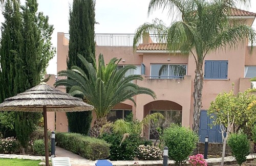 Comfortable, modern apartment in the pretty town of Mandria near to Paphos & the airport. Walking distance to restaurants, bars, supermarket & lovely beach. Unspoilt location with swimming pools & lush gardens to enjoy in private select development. Large one bedroom apartment. Tastefully furnished. Plenty of wardrobe space. Lovely terrace off master suite & lounge enjoying beautiful garden & pool views. Massive roof sunbathing terrace with panoramic views of the countryside & sea. Flat screen international TV. Free WiFi, air conditioning & parking. Two beautiful pools to luxuriate & plenty of sun loungers to take in the rays. The apartments are positioned in a lemon & orange grove.