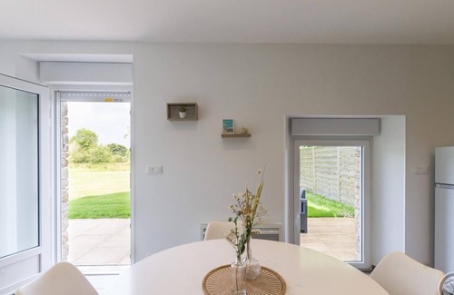 Semi-detached house to the owner, single-story. Living room (TV, Wi-Fi) with kitchenette (oven, dishwasher, microwave, refrigerator with freezer, washing machine). Toilet. Bedroom 1 (140x200 bed) with private bathroom and direct access to the garden. Double sofa bed. Baby equipment on request. Sheets for hire. Cleaning service at an additional cost. Electric heating included. All charges included. Private unfenced garden. Terrace. Garden furniture. Barbecue. Deckchairs. Parking. 2 bicycles available. Protected from urbanization, the village of Anneville sur Mer offers an authentic living environment and its dunes have also retained their precious wild appearance. You will thus enjoy a stay by the sea as very privileged people, away from time and mass tourism. Take advantage of the incredible scenery of the Geffosses harbor (protected area) located just beyond the village! Marie Christine and Vincent's property is located in a cul-de-sac and boasts a large lawned plot where you can stroll and relax. Extending from the farmhouse, this single-story home, built in 2022, is functional and perfect for recharging your batteries. A pleasant terrace surrounds the cottage, from the bedroom to the living room, allowing you to enjoy the fresh air at any time of day under the welcoming shade of the large ash tree.