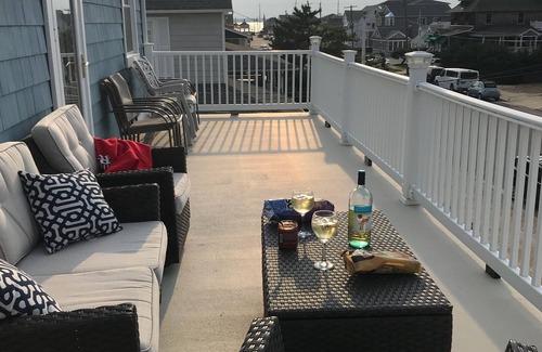This is a beautiful ocean block property just steps to the beach! The 3rd house from the ocean front, in a quiet family neighborhood of million dollar + homes. This Large home can accommodated big families or extended family and friends. 4 levels, with finished basement, garage, laundry room, outside shower, inside full bath for those return trips from the beach. The first floor has both beautiful front and back porches with a new kitchen with Kitchen Aid Stainless Steel appliances, granite counter tops. Hardwood oak floors throughout the house & open floor plan. dinning room, living room, sitting room and full bath. The second floor has a master bedroom, with a small bedroom off the master. There are two additional bedrooms (total of 4) that are nice size with bunk beds and queen size beds. There is a large second story porch, with beautiful views of the the Ocean and the Bay. Wonderful for evening relaxation in the cool ocean breeze. The Third floor is an open cape loft, with a full bathroom, two large closets, a queen size bed on one side and two twin size beds on the other. ABSOLUTELY NO PROM, GRADUATION OR COLLEGE GROUPS. This is a 'FAMILIES ONLY' House!