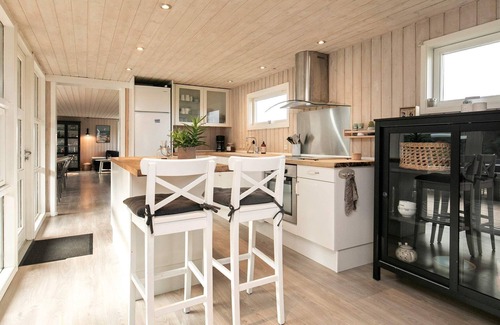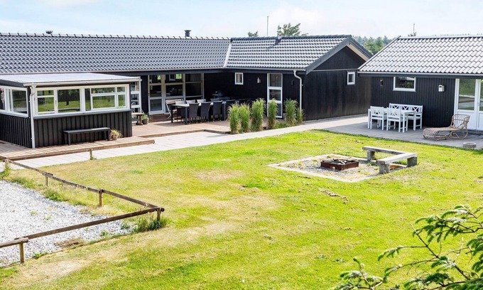 Holiday cottage with whirlpool located close to the beach and ocean at Løkken in quiet, scenic surroundings and within walking distance to town. The house was renovated and had a section added in 2016. Living room in open concept with the kitchen, 3 bedrooms and an annex with 2 bedrooms and a bathroom. There is wireless internet and a PlayStation for amusement. Both a heat pump and a wood-burning stove for heating. Modern and bright furnishings. The living room is large and spacious. There is a large, partly covered terrace. The level lawn plot has a trampoline (usage at own risk/insurance). No letting to youth groups.A refundable deposit might be charged closer to your check-in date. The security deposit ensures a smooth stay and covers any additional services or consumption charges.This deposit covers utilities consumed during your stay and any additional services that may be taken.The final amount will be adjusted based on actual meter readings, actual usage of extra services, and any remaining balance will be refunded within 21 days after checkout.This deposit simply acts as a prepayment for charges that you would anyways pay for, ensuring a seamless stay and check-out experience.