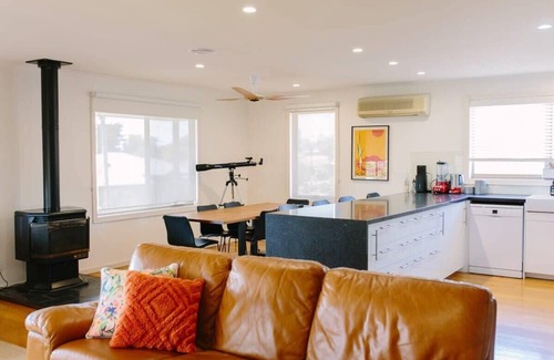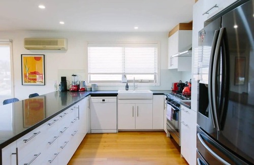 Discover the charm of our 3-bedroom, 2-bathroom Clifton Springs retreat, offering a serene private garden and a raised deck with breathtaking sea views. This stunning abode combines luxury with comfort, ideal for families or groups. Relish in alfresco dining on the spacious deck, equipped with a BBQ. Inside, the home is beautifully furnished, ensuring a cozy and stylish stay. Immerse yourself in this exquisite coastal haven for a truly unforgettable getaway.