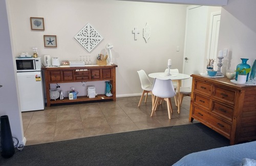 Beautifully appointed studio sleeping 4 guests 270 meters walk to stunning beaches, lake reserve, walking and bike tracks, fishing, boating and surf. Cafes and shopping and great places to eat close by close by.