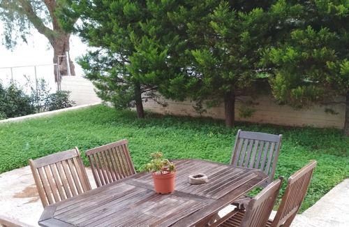 It is a wonderful, unique studio of 20 sq.m. It is located on the sea in the area of Nato Aianteio. Its entrance is right on the beach, on a very beautiful and clean beach where you can enjoy your swimming! It has a very large courtyard with trees to relax and enjoy the incredible feeling of living next to the sea! You can also stroll along the seashore, and visit nearby organized beaches and cafe.