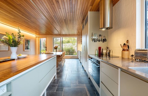Upstairs, enjoy a breezy living and dining area bathed in natural light, with Daikin split systems in both bedrooms and the lounge for year-round comfort. The fully equipped kitchen is perfect for preparing meals at home, with modern appliances and generous bench space. Downstairs, a second living/rumpus room offers another space to spread out and relax, with Sonos Bluetooth speakers throughout the house. The house is warm in winter and cool in summerwith a split system for climate control and ceiling fans in the bedrooms. Outside, you'll find an electric BBQ for alfresco dining on warm evenings.
