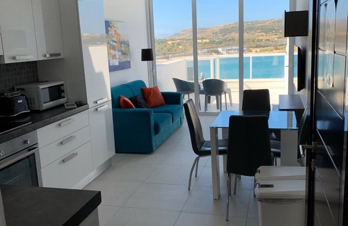 Seaview Penthouse Modern 2 bedroom 50 mts from beach is located in Għadira. Seaview Penthouse Modern 2 bedroom 50 mts from beach provides accommodation, featuring Laundry, Ocean View, Balcony/Terrace, among other amenities. This Apartment features Laundry, Ocean View, Balcony/Terrace, to make your stay a comfortable one.