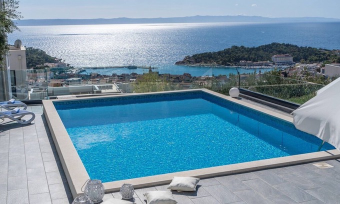 Seaview villa Lea 5-bedroom villa with heated pool and amazing views of the city and sea is located in Makarska. Seaview villa Lea 5-bedroom villa with heated pool and amazing views of the city and sea provides accommodation, featuring TV, Sports/Activities, Bedding/Linens, among other amenities. This Villa features TV, Sports/Activities, Bedding/Linens, to make your stay a comfortable one.