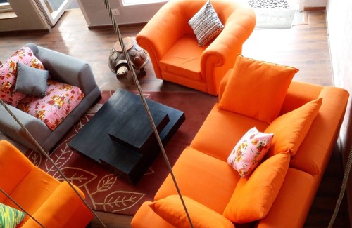 Nestled at the edge of a cliff, Seclude Ramgarh offers guests nine unique rooms that are designed to induce rest and relaxation. The rooms are staggered downhill and accessed by steps as are the common areas. This unorthodox architecture and property plan provides guests with unparalleled views of the hills and complete immersion in nature.