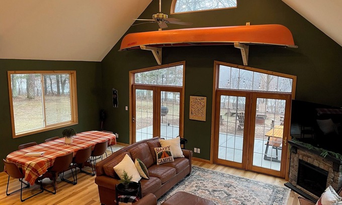 Our cabin is the perfect stay for couples, families and friends groups of up to eight. Zero entry front door and main level living make the cabin more accessible for guests with limited mobility. Our cabin is right on the Chippewa River, so while we welcome younger visitors, you’ll need to keep a close eye on very young children. The cabin can also be a great place to get some work done, with fast, reliable fiber optic internet.
