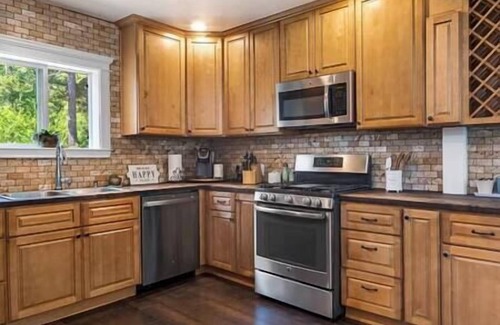 Gourmet Kitchen: Featuring stainless steel appliances and butcher block countertops, a dream for food lovers!