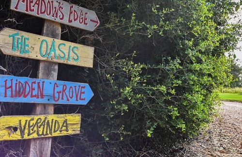 The meadow has several large oak trees for shade. Picnic tables and an assortment of different games make for the perfect country day. If you want to get away from it all, this is the place to do it!