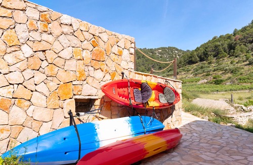 The villa is exceptionally well facilitated. Spend your mornings enjoying freshly-ground coffee on the terrace overlooking the sea before picking up your complementary beach towel and relaxing on the beach. Want to explore the surrounding bays? You have two SUP boards and a 3-person hard kayak – all of which are free for you to use. Want to explore the Adriatic a little further? You can rent the small 5-person, 6HP boat in the bay – or contact us to arrange larger boat rentals.