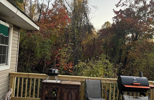 Skyline Lakes is a private, rustic cabin community, surrounded on 3 sides by Shenandoah National Park, at an elevation of 3,000 feet. There is horseback riding at Jordan Hollow and Wisteria winery is really fun. The community has a catch and release pond, well maintained roads and trail access to Shenandoah National Park (SNP). Stunning rear deck with panoramic views, this cabin has all the comforts of home. Starlink, SmarTVs, games, Keurig Coffeemaker, wood stove, fire pit, charcoal grill and nature galore.
