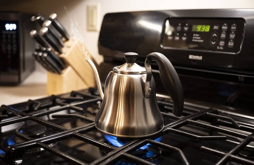 The kitchen is fully equipped. Just bring your choice of food, beverages, and seasonings! There is a traditional coffee pot with coffee filters and various coffee and teas provided for your enjoyment.