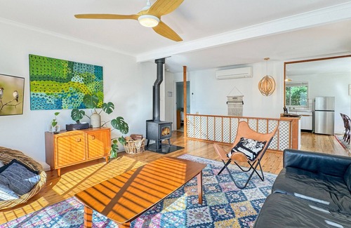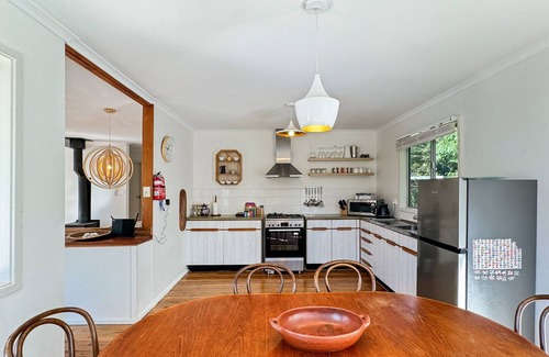 This classic mid-century beach house on the south coast is nestled among gum trees and just a 5-minute walk from the secluded Circuit Beach. This 2-bedroom, 2-bathroom retreat offers year-round serenity, with a cosy fireplace for winter evenings and a spacious deck for summer dining. Enjoy coastal walks along cliffside trails, taking in stunning ocean views. The Sandpiper is the perfect getaway for those seeking tranquility and a connection to nature, all within a stone's throw of the beach.