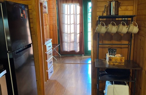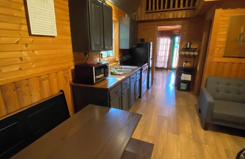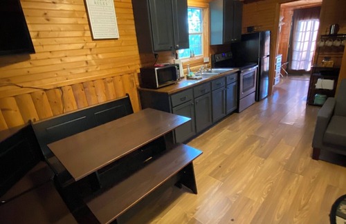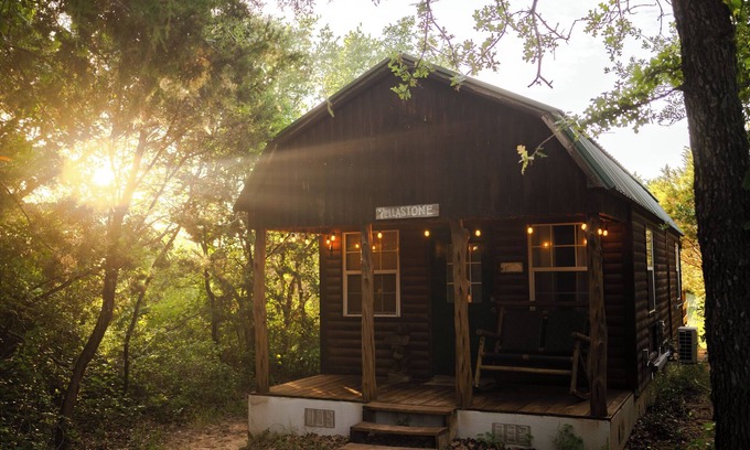 Welcome to The Yellastone, your rustic yet comfortable escape tucked deep within the scenic 140-acre Hideaway Ranch & Refuge in the North Texas Hill Country. This charming cabin is perfect for couples, small families, or solo travelers looking for privacy, peace, and a connection to nature without sacrificing comfort. Inside, you’ll find a queen bed and a convertible chair in the living room (converts to a small bed, for child), a full bathroom, and a well-equipped kitchen with everything you need to prepare meals during your stay. Step outside onto the covered porch to sip your morning coffee, take a soak in your private hot tub, or grill dinner as the sun sets over the oaks. There is also free Wifi and a smart tv. At night, unwind around your personal fire pit and stargaze under the vast Texas sky. The ranch itself offers walking trails, a catch-and-release fishing pond, a seasonal swimming pool, and a game room for laid-back afternoons. Whether you're here for romance, adventure, or simply to disconnect and recharge, The Yellastone offers the perfect blend of rustic charm and modern comfort in a peaceful, natural setting.