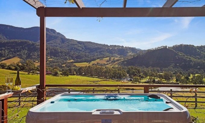 Heated Spa located on the Entry Balcony looking over the picturesque Valley, providing a perfect space to relax