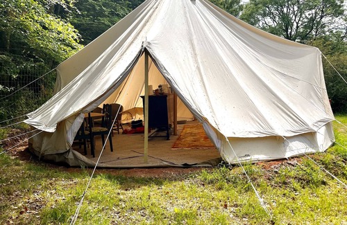 Being the only let on the family run farm, guests have the run of the roost when they stay . The Pod looks out over undisturbed woodland without a road or telegraph pole in site. It is run off of a solar charged battery pack and we use eco friendly toiletries. There is a heated gas shower and glass topped bathroom unit which boasts views out over the valley and woodland. We are a stones throw from both exmoor and Dartmoor and only 1 hours drive from some of north Devons finest beaches! sit back and relax in our little, undisturbed slice of Devon! Nestled in the quiet valley we call home on the edge of Exmoor is our spacious bell tent comprised of 2 7meter quad-door bell tents joined together to form a kitchen, dining and living space that leads into the bedroom made up of one double and two single beds with a further double pull out bed in the living space, with a gas heated shower and composting toilet to yourselves. Should you require more space for more guests, you can bring your own tents (please see below)