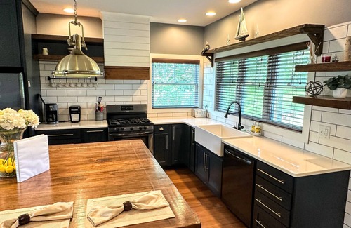 Numerous surrounding attractions, not to mention 30 acres of beautiful property with picturesque views right in the back yard with hiking trails, a stream and cool rock feature at the bottoms. (A second home next door is also used as a short term rental with adjoining property so if you see another guest walking a trail, no worries). Trail is moderate terrain. This home suits a romantic get away couple, family, or large group up to 10 people. ($10.00/person for over 6 guests to account for cleaning costs).