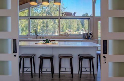 The Madrona Lake House, a quiet & secluded mid-century lakeside retreat. Peaceful nostalgic vibes, on scenic Lake Roesiger. Enjoy this comfortable midcentury home with friends & family - a perfect space to connect & relax. Make memories - from the private dock to the large lawn with pickleball, basketball, volleyball & ping pong - from the vinyl collection to the cozy fireplaces. Relive the charm of a summer camp with swinging hammocks, paddle boats, canoes, and cooking s'mores over the camp fire.