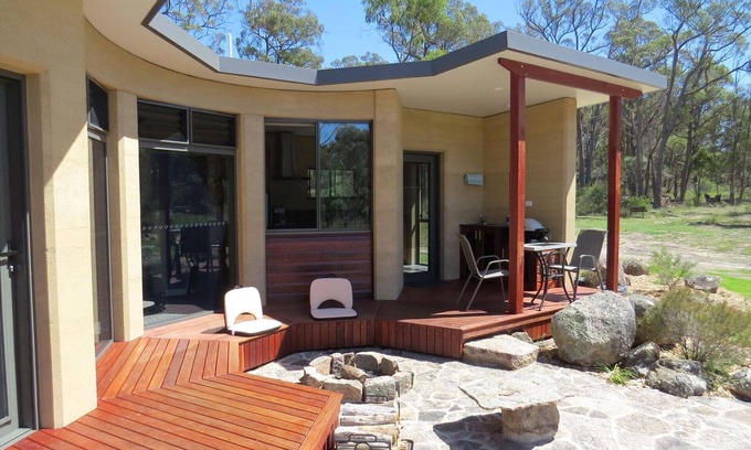 Architecturally and environmentally designed, secluded Rammed Earth cabins. The thermal mass of the earth walls adds to the inner warmth and the natural feel & comfort of the Granite Belt. There is a touch of paradise in the style & nature of the accommodation with an easy transition to the outside world of nature.
