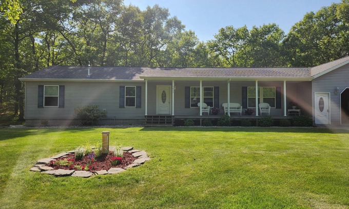 Located on a wooded lot just one mile outside of the town of Caseville on a private road, you will be able to enjoy many items nature has to offer. Drink your morning coffee on the porch while watching the deer graze in the yard, then take the golf cart down to the break wall for a little fishing, or to the beach for a walk!!! Summer nights would not be complete without spending some time under the stars around a bon fire!!