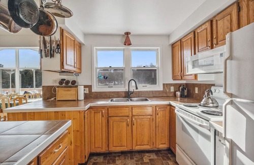 There are many areas on the property to enjoy; the wrap-around deck offers all-day sun or shade depending on your liking. There's plenty of trees for shade or there's plenty of clear land for sun-lovers and kids or dogs to run around. There are two large vegetable gardens that we maintain and that are at your disposal to explore. The perannial gardens are also lucious and a sanctuary for birds and bees.