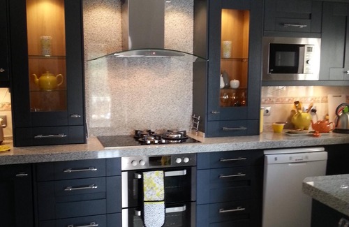 The house comprises a large kitchen, utility room and comfortable sitting/dining room. There are two letting bedrooms, a double room with en suite shower room on the first floor and a twin room on the ground floor with full bathroom next door. The sitting room and twin bedroom have French doors leading to the outside covered terrace. The upstairs bedroom has its own private roof terrace. The covered terrace has a table and chairs for outside dining, and overlooks the south-facing pool terrace. A fully-fitted kitchen comprising larder fridge (bigger fridge is in the utility room), dishwasher, double multi-function oven, hob with three gas burners (including a superfast burner) and an induction ring, microwave oven, and wine cooler was installed in 2017. The bath/shower rooms were upgraded in 2018.