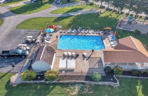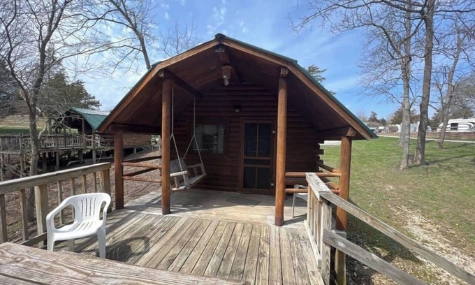This log cabin is located within Lake Monroe Village RV Campground providing you with the privacy of a traditional short term stay. In addition, providing you with shared amenities and on site support from our community.