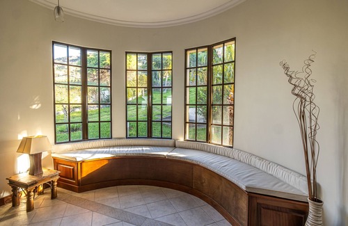 - There is also a window seating area in the dining room looking out onto the entrance garden