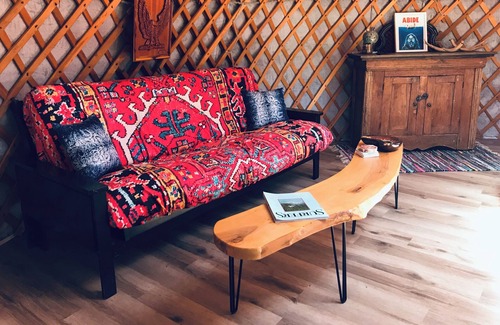 Meet Orange Sunshine - your own secluded yurt, right on the river. Soak in the boho vibe, enjoy a candle lit dinner made in your own kitchenette, stoke the wood stove, and cozy up at night in a comfy queen bed. Complete with outdoor shower, private fire pit & outhouse. Only a 7 min drive to Baddeck.
