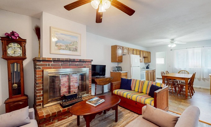 Spend a day exploring the neighborhood using the local bike trails or taking out the provided kayak. If you're more into indoor entertainment, this retreat offers an inviting living room with a smart TV (there's no cable, only streaming capability). Enjoy a well-equipped kitchen, two well-furnished bedrooms, a full bathroom, and a laundry room with a washer and dryer.