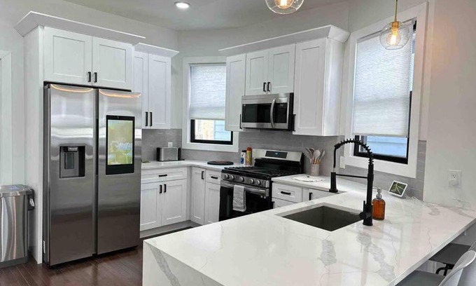 Secret Escape 20 Min from NYC N 1 is a recently renovated apartment in Jersey City where guests can make the most of the garden and terrace. Both free Wifi and parking on-site are available at the apartment free of charge. The accommodation provides full-day security and a concierge service for guests. Providing a patio and garden views, the spacious apartment includes 3 bedrooms, a living room, flat-screen TV, an equipped kitchen, and 2 bathrooms with a walk-in shower and a bath. Featuring air conditioning, this unit has a dressing room and a fireplace. The apartment offers bed linen, towels, and laundry service. An American breakfast is available at Secret Escape 20 Min from NYC N 1. Statue of Liberty is 2.1 miles from the accommodation, while Ellis Island is 2.7 miles away. Newark Liberty International Airport is 7.5 miles from the property.
