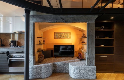 This small apartment is obtained from an old tavern with a brick vaulted ceiling that embraces it in all its breadth.