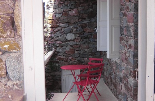 This studio is a 25sqm private apartment located on the lover level of the complex which offers it extra privacy. It is a high quality, fully equipped private double room with a private veranda offering an astonishing view over the Aegean Sea. Like the other properties of the complex, this unit is also built with hand-cut and fitted stone, ceilings of wooden beams and natural materials. Guests can enjoy the privacy this property has to offer, relax in the veranda overlooking the sea and admire the stunning view. It’s an ideal choice for couples.